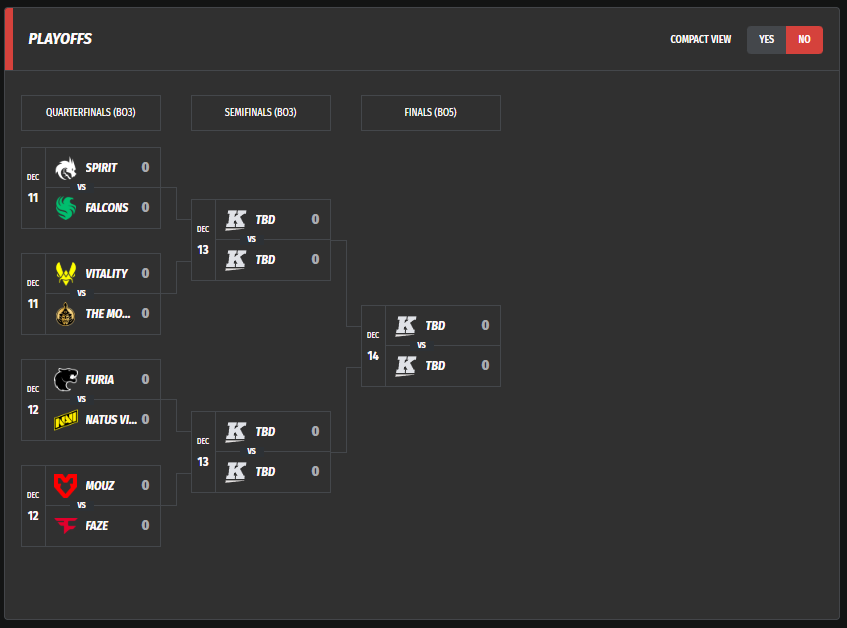 À l'issue de l'étape, les équipes suivantes se sont qualifiées pour les playoffs : Spirit, FURIA, MOUZ, Vitality, The MongolZ, FaZe, Natus Vincere et Falcons. Elles continueront à se battre pour le titre et la plus grande part du prize pool de 1 250 000 $ lors de la phase finale, qui se déroulera du 11 au 14 décembre au MVM Dome.